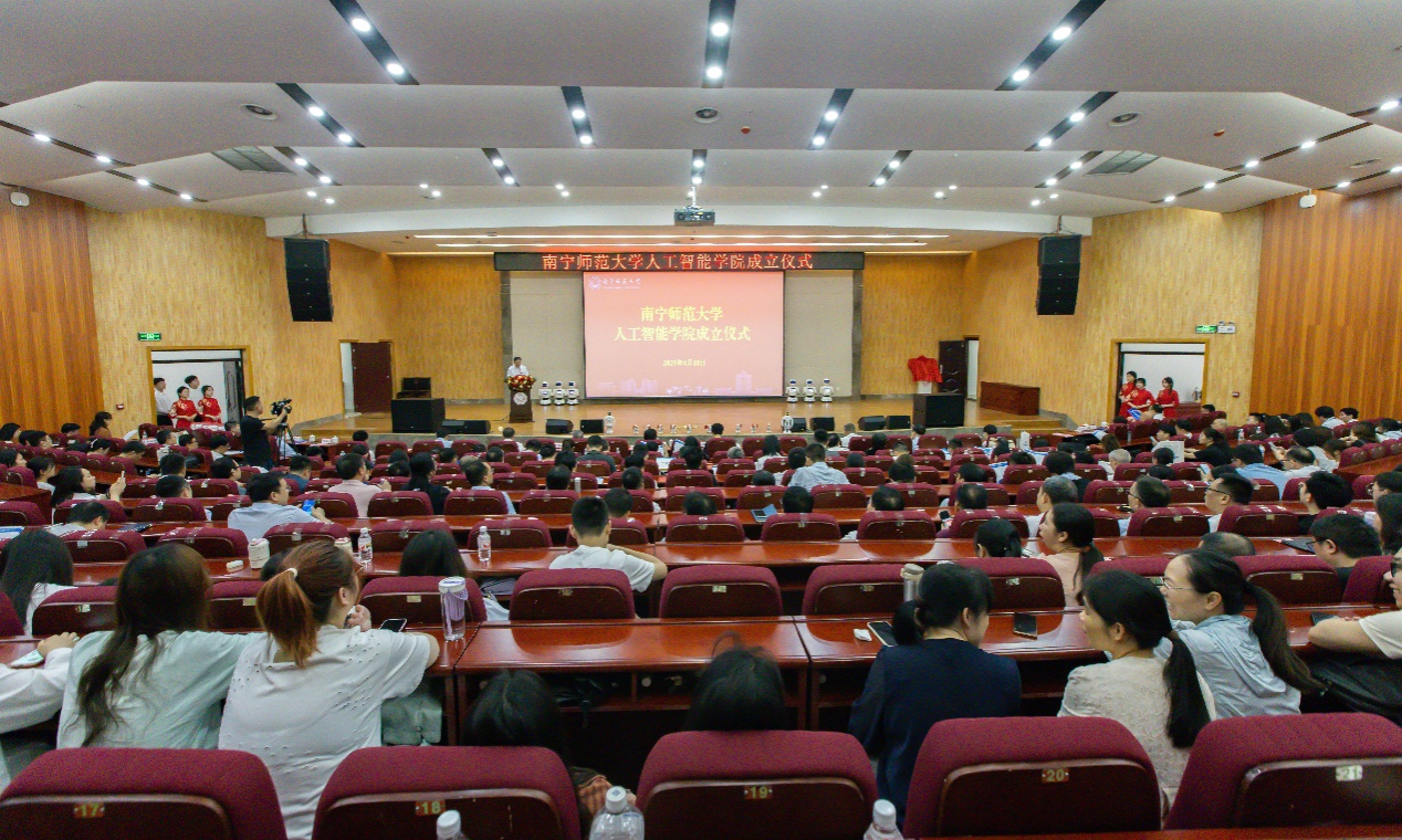 4月18日,我校在武鸣校区图书馆报告厅举行人工智能学院揭牌仪式。自治区教育厅副厅长张旭凤,广西人工智能学会副理事长、广西电力职业技术学院党委书记赵峰,广西科学院副院长吕郁彪,武鸣区党委常委、统战部部长、政府副区长黄任含,广西壮族自治区通信产业服务有限公司副总经理徐陆勇及我校党委书记张鹏出席仪式并致辞。学校校长隆广庆出席并主持仪式。学校副校长卢远,区内教育管理部门及教研机构代表、区内高校代表、区内中小学校代表、行业学会代表、企业嘉宾以及学校师生代表齐聚一堂,共同见证这一重要时刻。