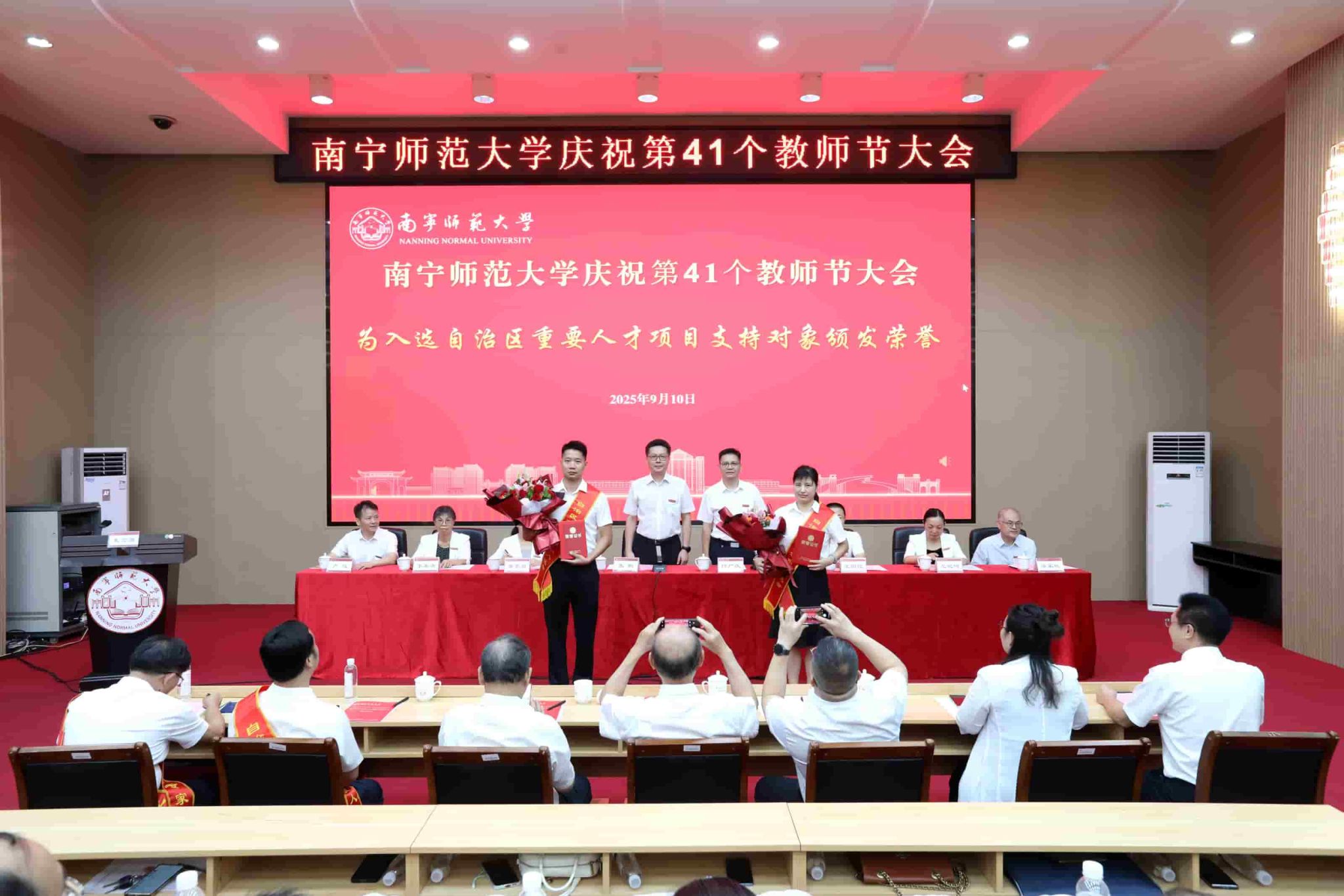 大会举行了教师光荣退休仪式、教龄满30年教师荣誉证书颁发仪式及新晋正高级专业技术职务聘任仪式,既致敬长期耕耘教育一线的老教师,也为学校教育事业发展注入新活力。在新教师入职仪式上,新教师代表向学校递交《师德承诺书》,校领导为其佩戴学校徽章,宣告着新教师正式在南宁师大这片教育热土上开启教育使命的新征程。