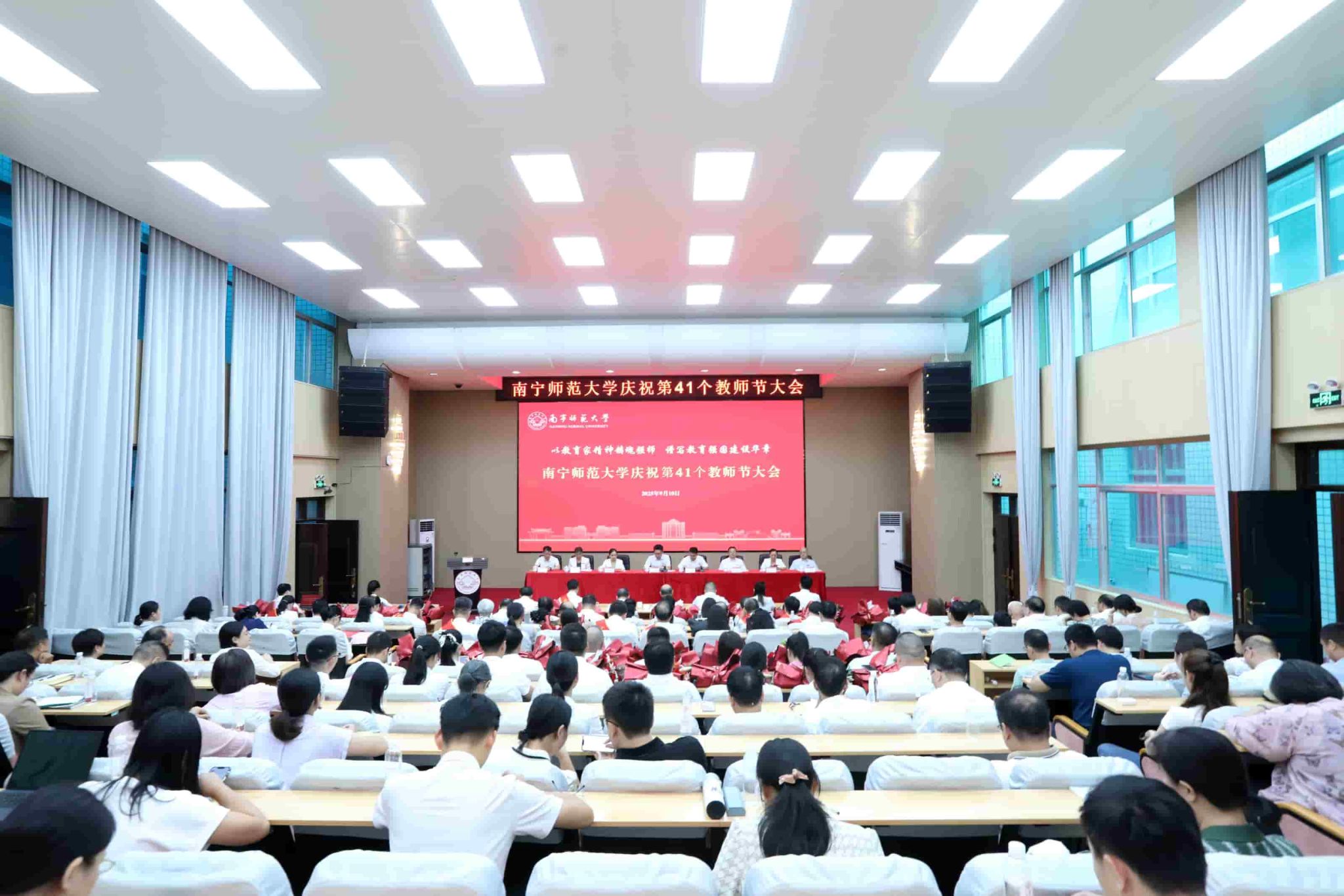 9月10日下午,我校在明秀校区文星楼301报告厅举行庆祝第41个教师节大会。大会以“以教育家精神铸魂强师,谱写教育强国建设华章”为主题,校领导张鹏、隆广庆、唐荣双、王国红、李美清、龙妮娜、卢远、梁家斌与师生代表齐聚一堂,共话教育。大会由隆广庆校长主持。