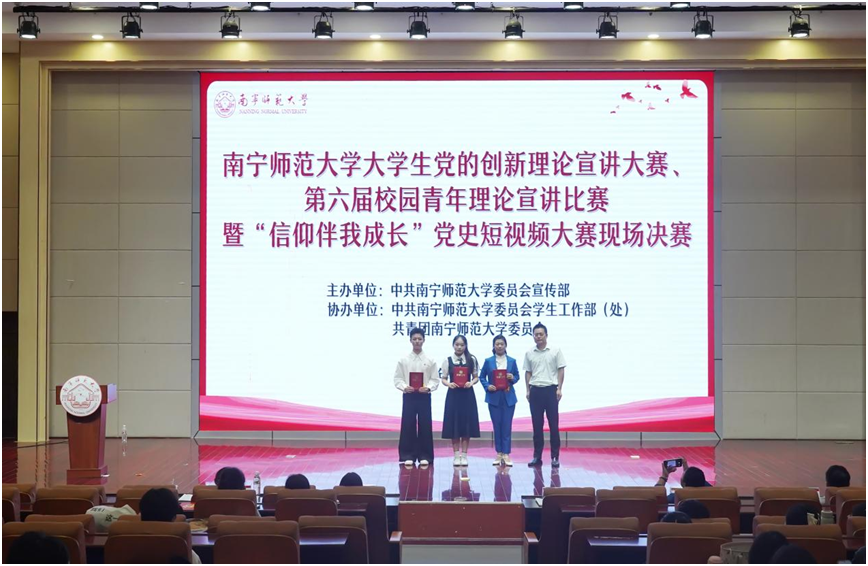 9月27日,由校党委宣传部主办,党委学生工作部(处)、校团委协办的新澳金龙资料大全大学生党的创新理论宣讲大赛、第六届校园青年理论宣讲比赛暨“信仰伴我成长”党史短视频大赛现场决赛在五合校区举行。学校党委宣传部部长纪明担任评委并致辞,党委学生工作部部长刘君宇、马克思主义学院党委书记李玲、法学与社会学院副院长(主持工作)吴少进、校团委副书记何俊斌应邀担任评委。近300名师生现场观摩决赛。