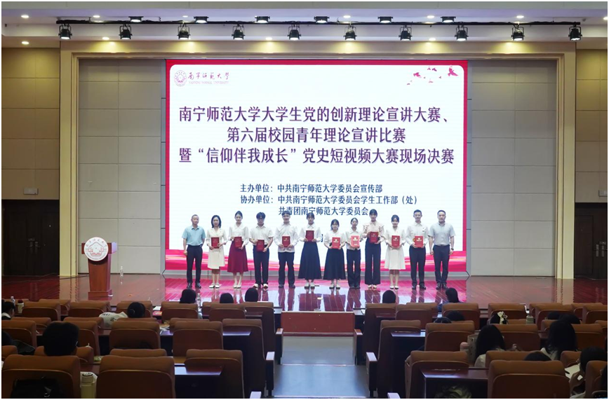 纪明在致辞中指出,此次理论宣讲比赛是学校党史学习教育常态化长效化工作的一项重要内容,是理论通俗化、大众化的有效载体,是发现和培养学校优秀宣讲人才的重要平台。希望通过宣讲深入挖掘广西丰富的红色资源,凸显广西作为中国与东盟文化交流枢纽的独特价值,从理论宣讲中汲取奋斗力量,砥砺初心使命。