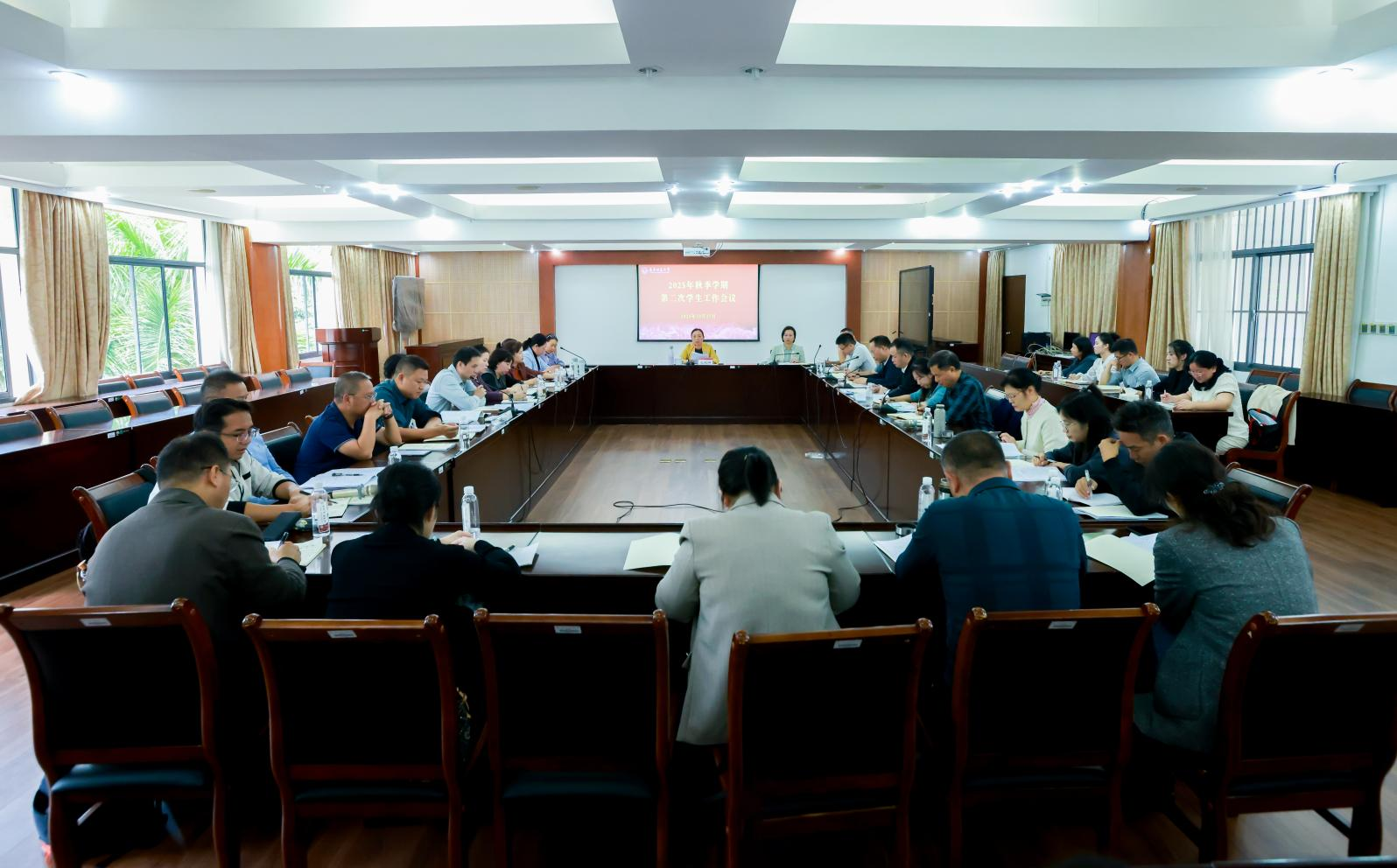 10月27日上午,我校在明秀校区鸿远楼409会议室召开2025年秋季学期第二次学生工作会议。会议紧扣立德树人根本任务,聚焦学生心理危机干预、辅导员队伍建设、毕业生高质量就业三项重点工作,开展深入研讨与任务部署。学校党委常委、副校长龙妮娜出席会议并讲话。学生工作部(处)、研究生工作部、校团委等部门负责人、各学院分管学生工作的党委副书记参加会议。会议由党委学生工作部部长刘君宇主持。