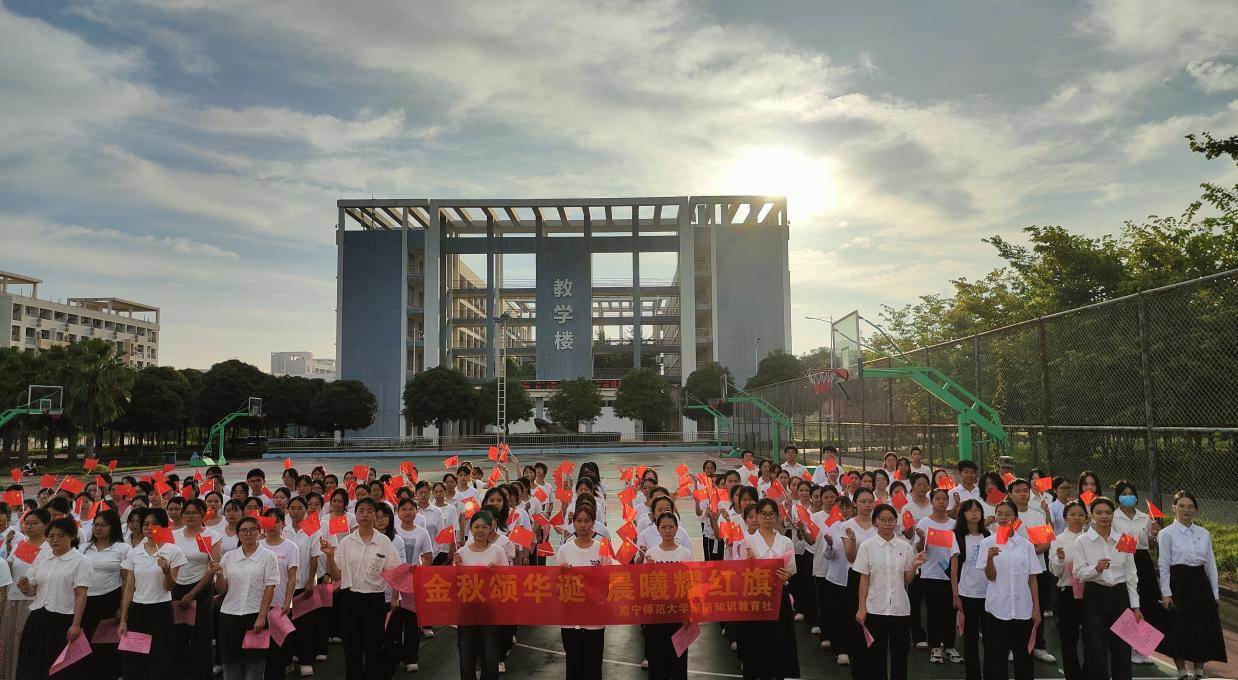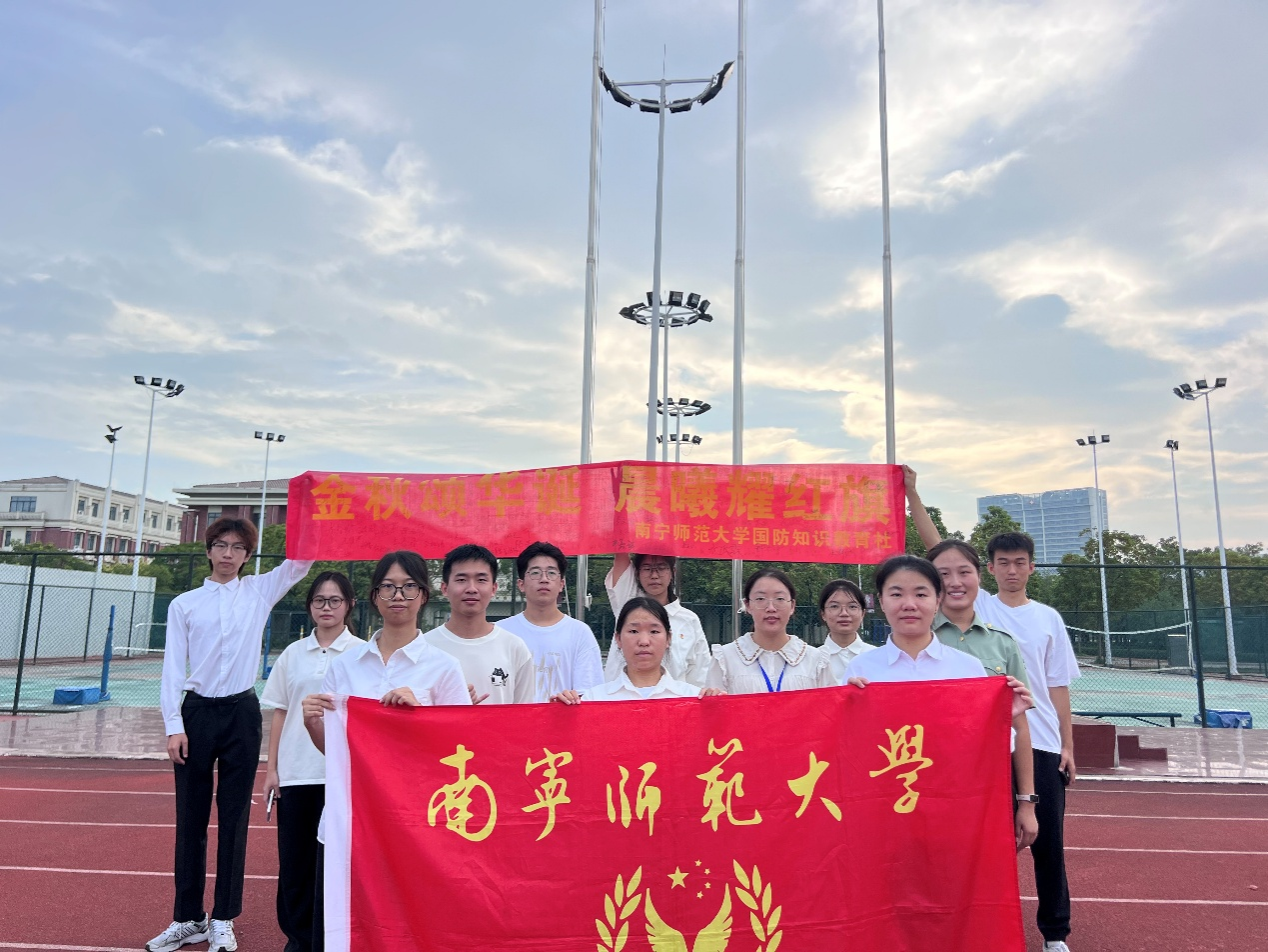 为激励新时代青年勇于担当使命、逐梦前行,10月1日上午7时30分,我校大学生国防知识教育社分别在五合校区升旗台、武鸣校区松园田径场举行“金秋颂华诞,晨曦耀红旗”主题升旗仪式,共庆中华人民共和国成立76周年。