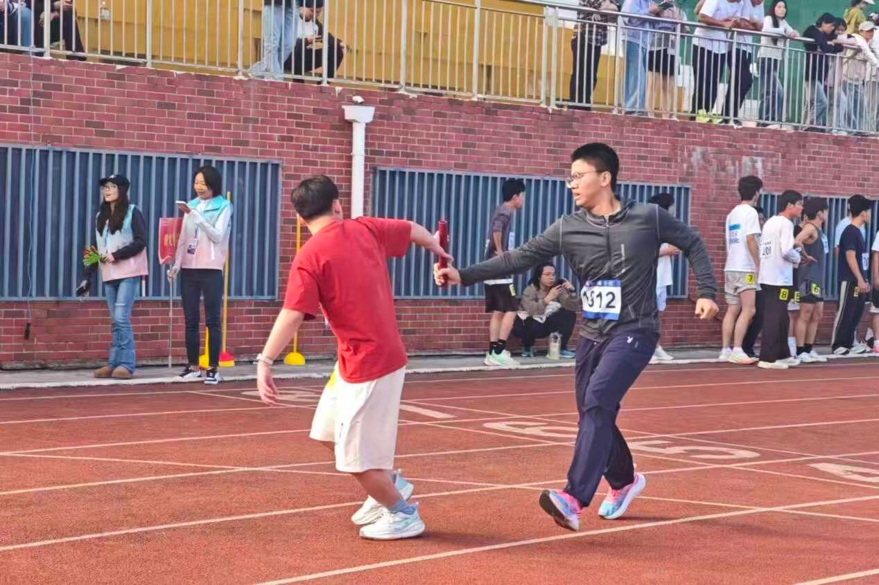 作为本届校运会最后一个集体项目,现场热情高涨,各学院啦啦队沿跑道两旁为运动员呐喊助威。比赛开始前,各组运动员有序入场。发令枪响后,运动健儿们奋力起跑,双臂迅速摆动,在跑道上展开角逐。下一棒选手提前俯身,与队友默契地传递交接棒,后续运动员接续发力,在赛场上全力冲刺。