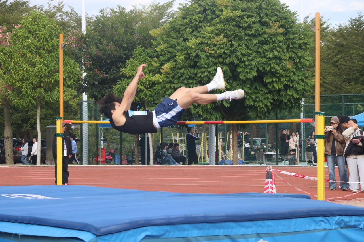 11月21日上午,我校运动会男子跳高决赛在武鸣校区松园田径场进行。