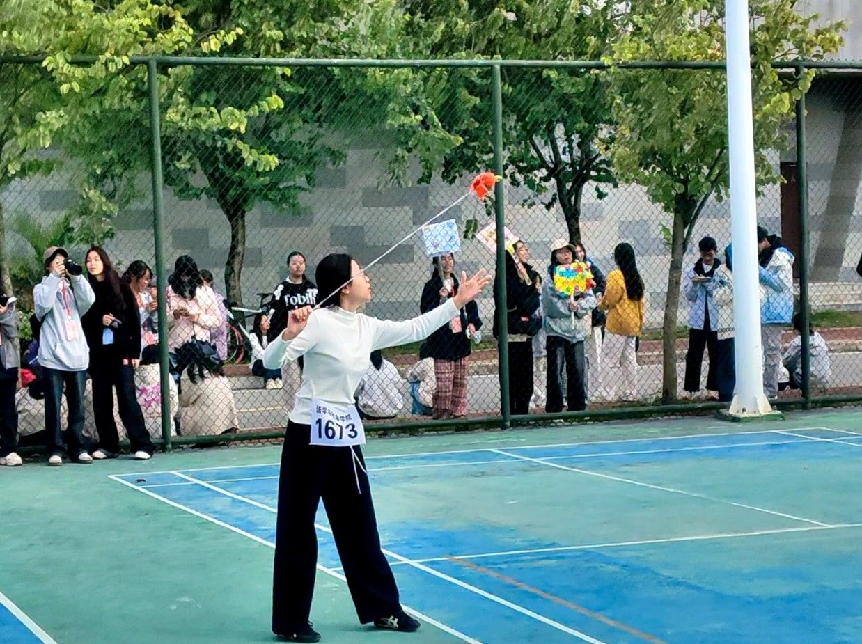 10月21日下午,我校运动会甲组女子高杆投绣球决赛在武鸣校区松园田径场精彩开赛。