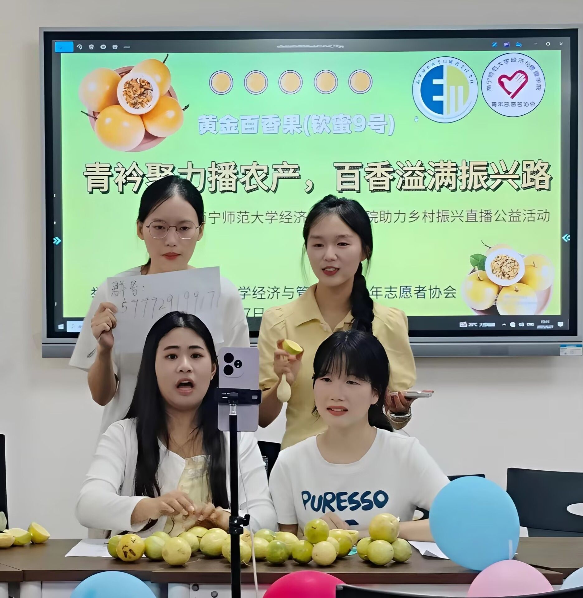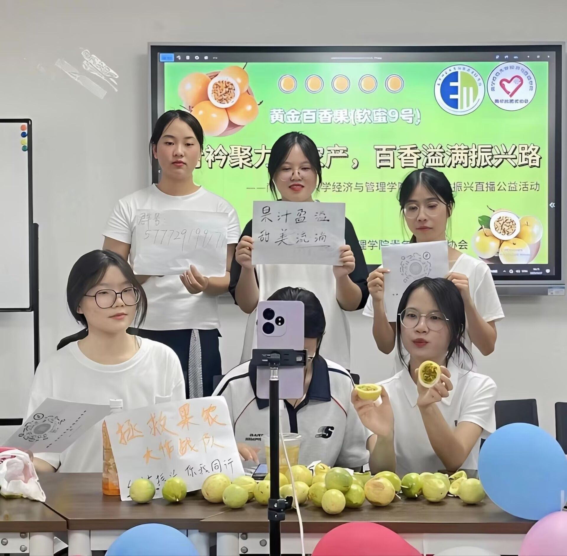 为积极响应国家乡村振兴战略,拓宽农产品销路,带动农户增收,新澳金龙资料大全经济与管理学院青年志愿者协会于2025年9月27日开展以“青衿聚力播农产,百香溢满振兴路”为主题的百香果直播助农大赛。