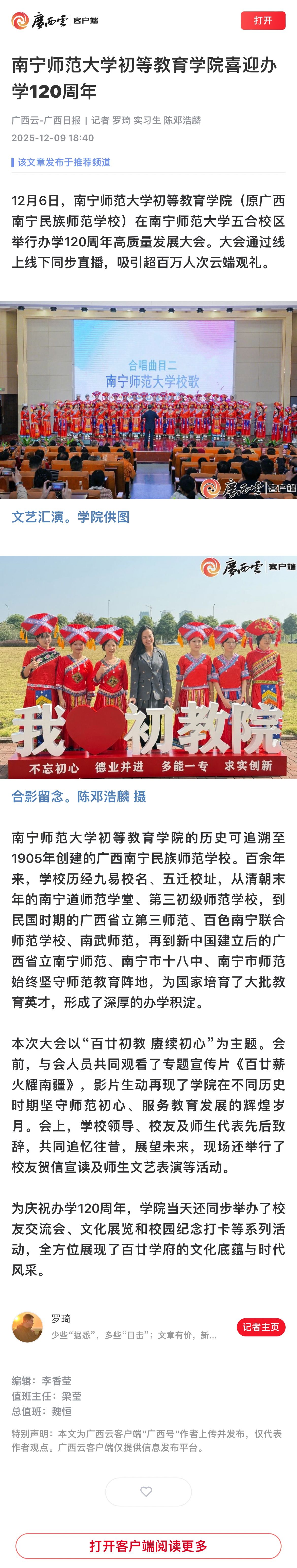 【广西云】新澳金龙资料大全初等教育学院喜迎办学120周年
