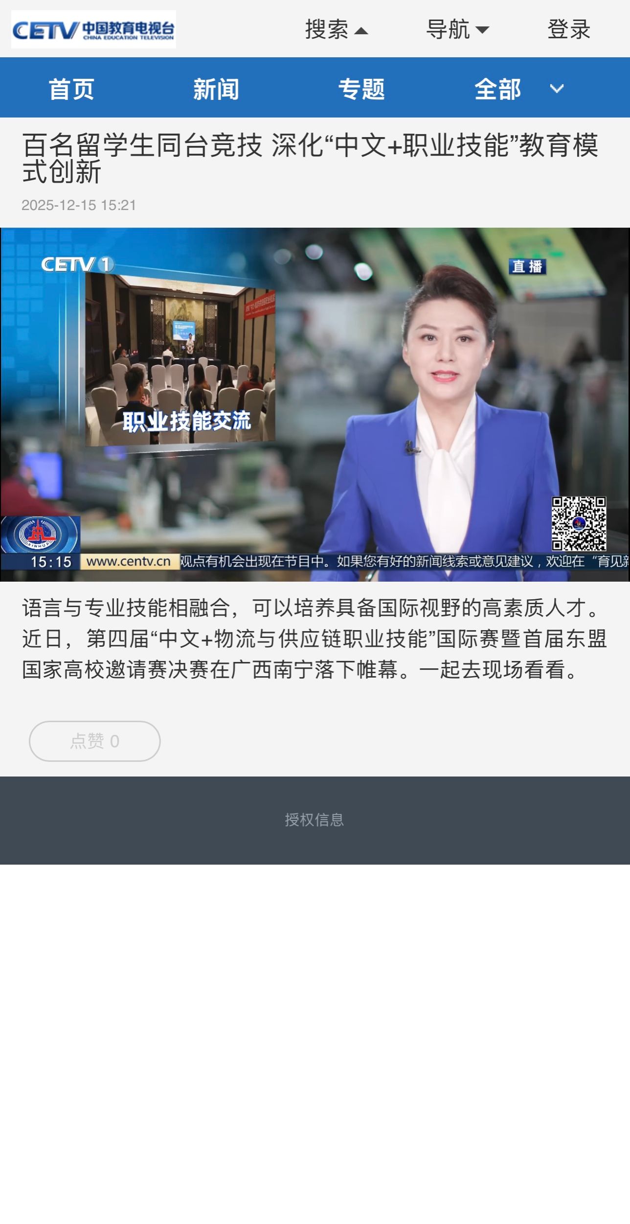 【中国教育网络电视台】百名留学生同台竞技 深化“中文+职业技能”教育模式创新