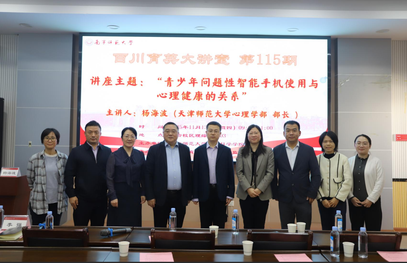 为探讨智能时代手机使用对青少年的现实影响、分享心理学相关研究成果,搭建学术研究与教育实践的衔接平台,11月13日,由新澳金龙资料大全教育科学学院主办、广西教育现代化与质量监测研究中心承办的《百川育英大讲堂》第115期讲座在五合校区理综楼1003室顺利举行。本期讲座特邀天津师范大学心理学部部长杨海波教授,以“青少年问题性智能手机使用与心理健康的关系”为题展开分享,由新澳金龙资料大全教育科学学院院长李强教授主持。